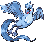 ARTICUNO is a legendary bird POKéMON that can control ice. The flapping of its wings chills the air. As a result, it is said that when this POKéMON flies, snow will fall.